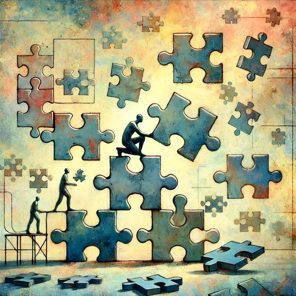 Puzzle (yapboz oyunu) yapanlar bilir, bir puzzle’a başlamanın ilk adımı, kenar parçaları bulup önce çerçeveyi oturtmaktır. Daha sonra benzer renkler veya şekiller yanyana konularak öbek öbek birbiri ile bağlantılı olduğunu düşündüğümüz parçaları yanyana getiririz. Daha sonra bu parçaları yerlerine oturtarak bütüne doğru gitmeye çalışırız. Biliriz ki ilk denemede oturan parçalar enderdir, bir kaç kez  ait olmadığı yerlere koymaya çalışırız o parçaları, çünkü sanki oraya da uyuyormuş gibi gelir bize. Puzzle bu anlamda deneme yanılma, bağlantıları bulma, sabır, tatmin, bütünselliği arama gibi hislerimizi tetikler.